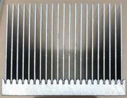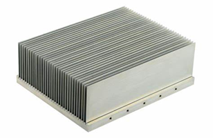 對於面積小而發熱高的應用,接合式翅片散熱器就成了一種普遍的選擇。接合式翅片散熱器具有分離的翅片,這些翅片是後固定到底板上的。這種加工方式在生產中不會受到軋製成型工藝的限制。翅片的寬高比只需要根據實際情況進行考慮。翅片固定到基座上的方式有多種。釺焊是非常常用的工藝,但是這種工藝會讓工人們有暴露在異常高温下的風險。一種簡單且安全地進行翅片和底板固定的方法就是採用高導熱環氧膠。